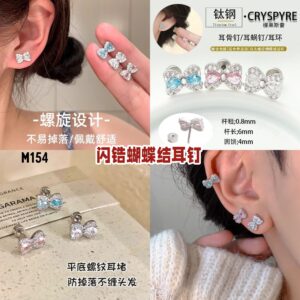 M154 闪锆蝴蝶结耳钉 (一粒/三粒)