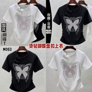 M063 烫钻蝴蝶盘扣上衣 (一件)
