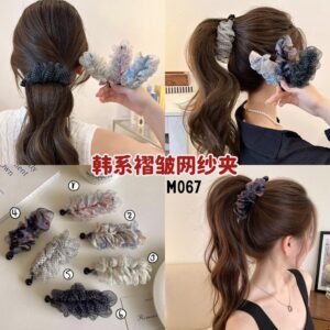 M067 韩系褶皱网纱夹 (2个)