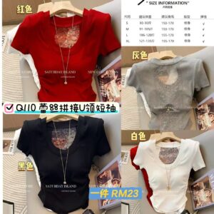 Q110 蕾丝拼接U领短袖(1件)