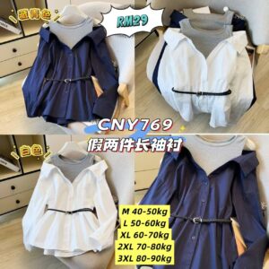 CNY769 假两件长袖衬衫 (1件)