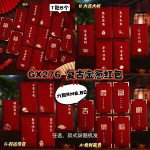 GX276 复古金葱红包 (6包)【款式缺随机发】