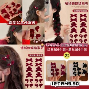 U404 丝绒蝴蝶发夹(12个)