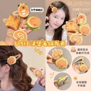U513 汉堡毛绒发夹(4个)