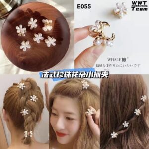E055 法式珍珠花朵小抓夹(10粒)
