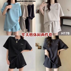 H178 华夫格休闲两件套(1套)