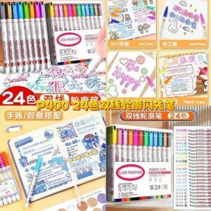 P400 24色双线轮廓闪光笔(1盒24色)