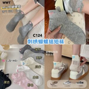 C124 刺绣蝴蝶结短袜(4双)
