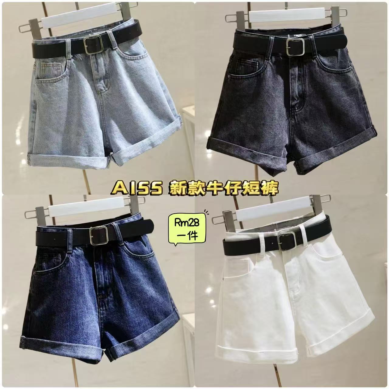 牛仔短裤女新款高腰休闲宽松显瘦大码阔腿卷边a字热裤