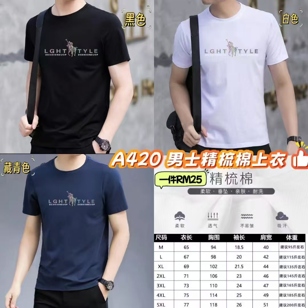 A420 男士精梳棉上衣 🛍️ #一件RM25