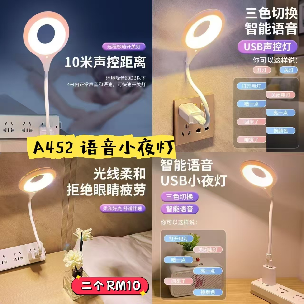 智能小夜灯可调节亮度 语音usb接口夜用护眼台灯声控👍🏻