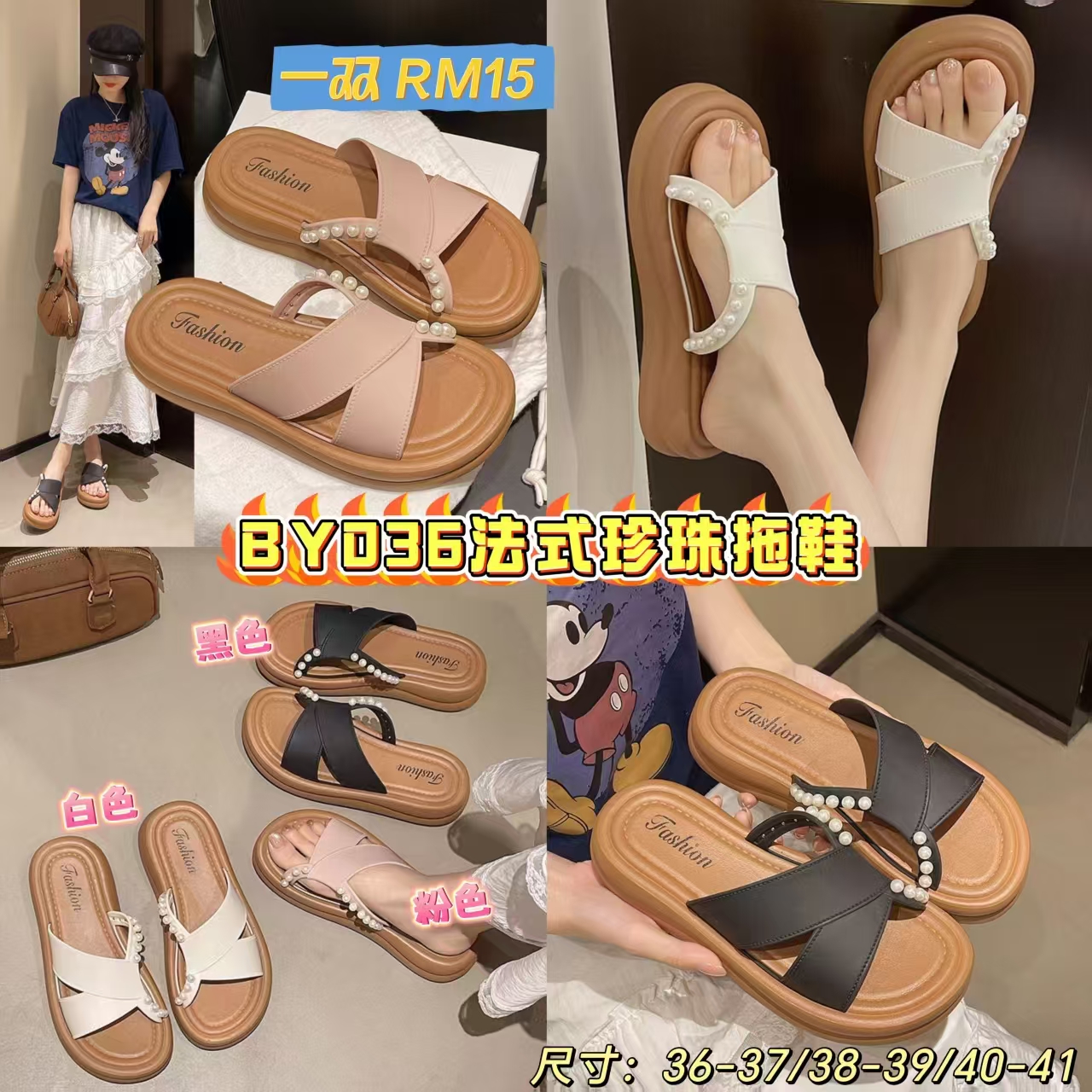 📦VS包邮到你家📦 BY036 法式珍珠拖鞋 🥰#一双RM15