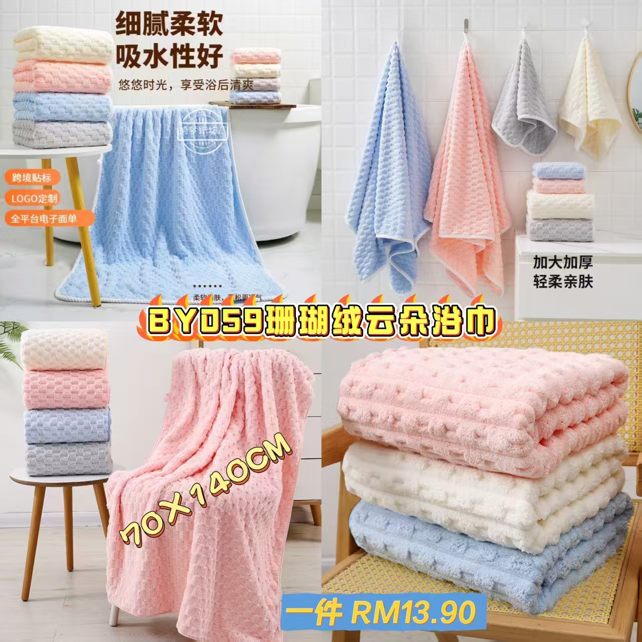 📦VS包邮到你家📦 BY059 珊瑚绒云朵浴巾 🥰#一件RM13.90