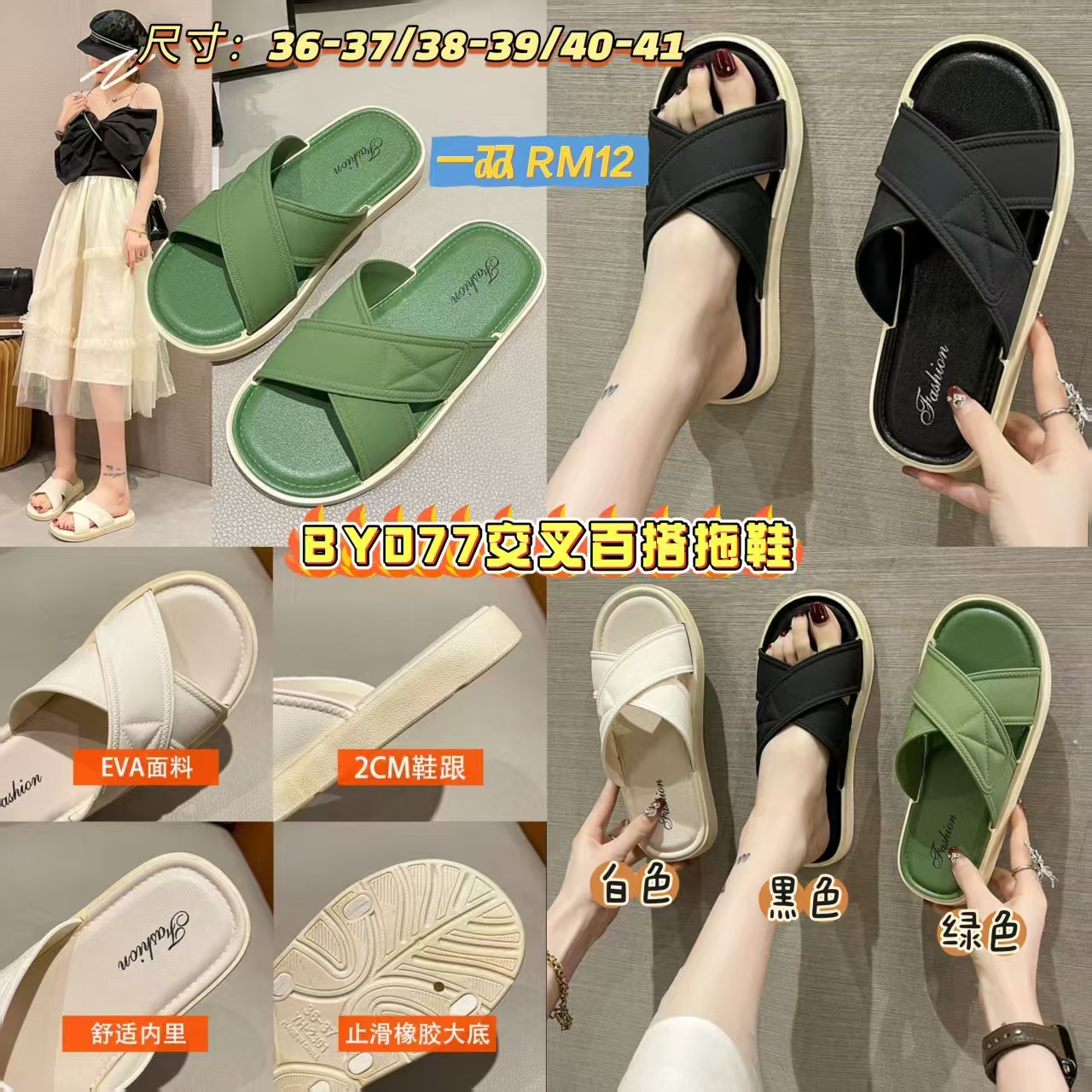 📦VS包邮到你家📦 BY077 交叉百搭拖鞋 🥰#一双RM12