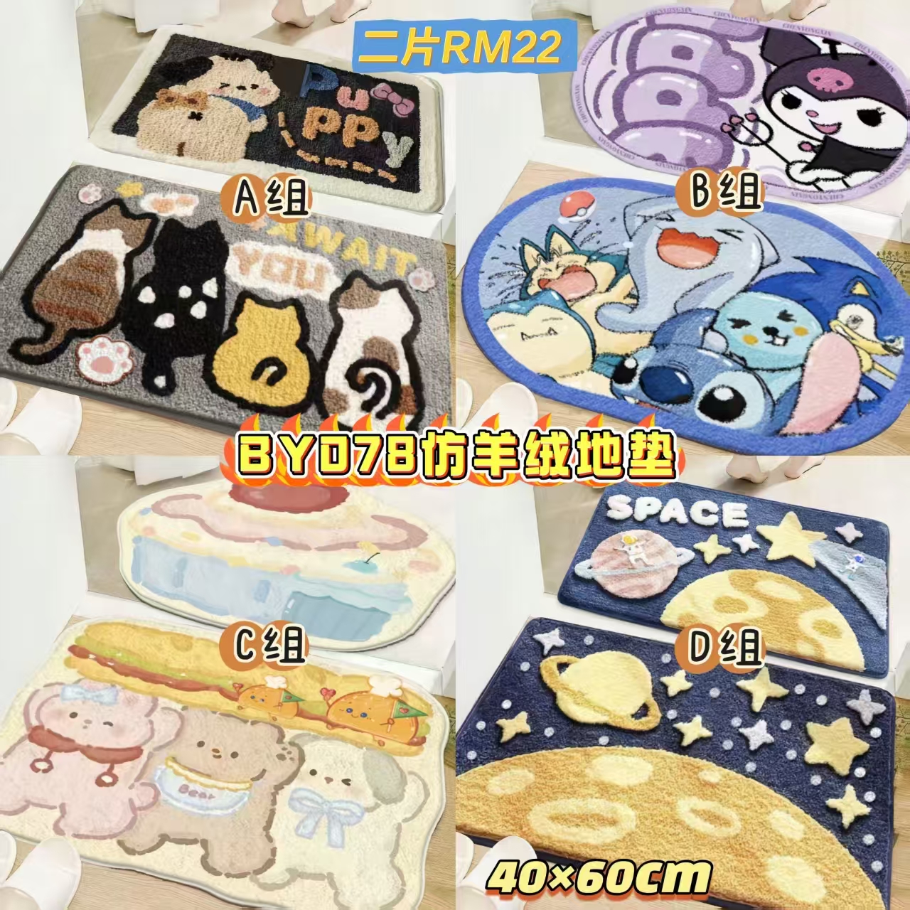 📦VS包邮到你家📦 BY078仿羊绒地垫 🥰#二片RM22