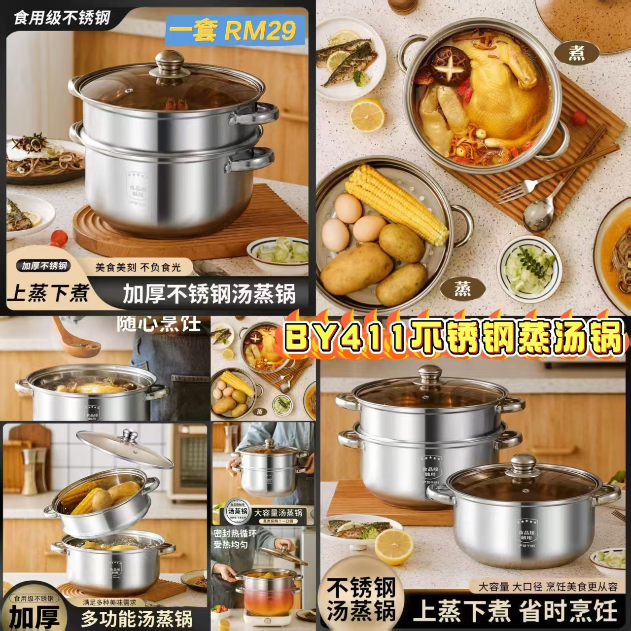 📦VS包邮到你家📦 BY411 不锈钢蒸汤锅 🥰#一套RM29