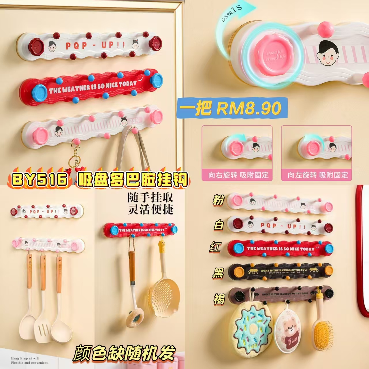 📦VS包邮到你家📦 BY516 吸盘多巴胺挂钩 🥰#一把RM8.90