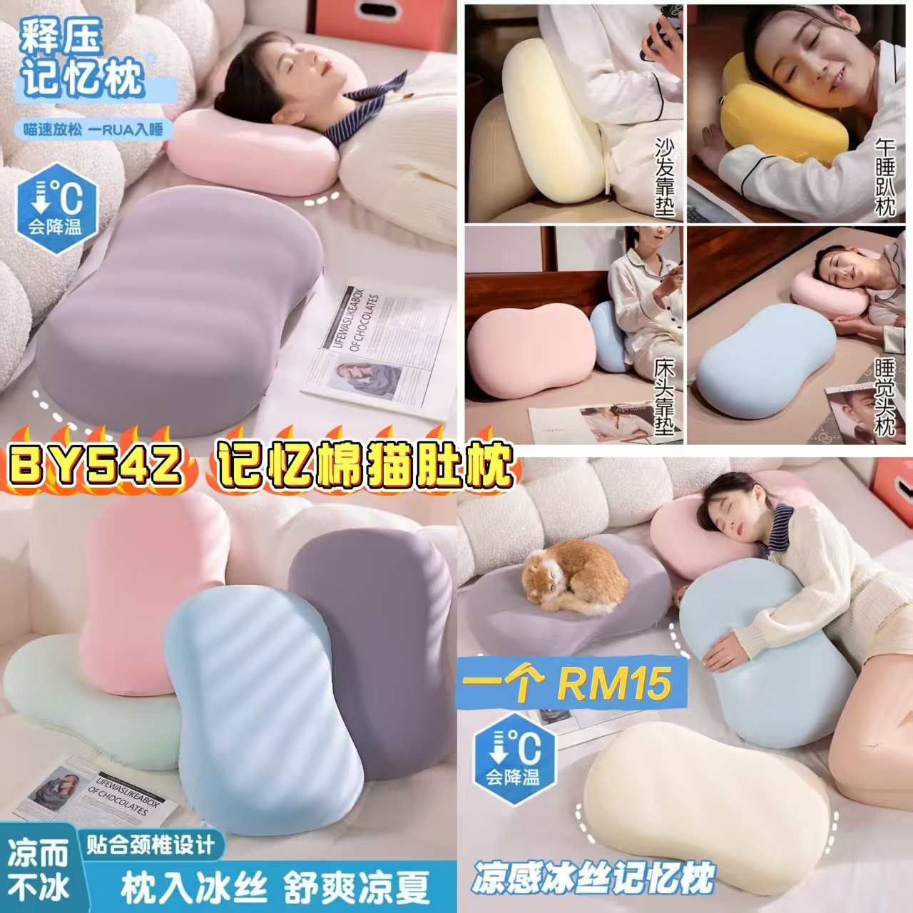 📦VS包邮到你家📦 BY542 记忆棉猫肚枕 🥰#一个RM15