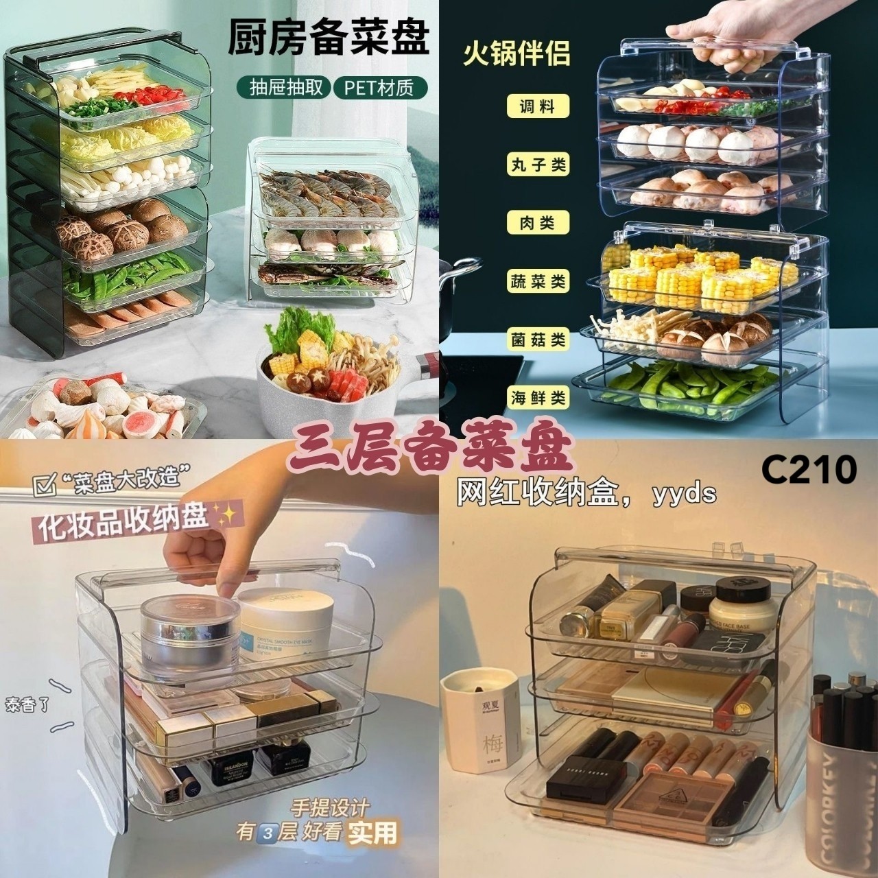 备菜、火锅摆盘都很合适,一格三层,可以减少空间不占地方,每层还增加了防滑垫,分层也方便冲洗,太多优点了👏🏻