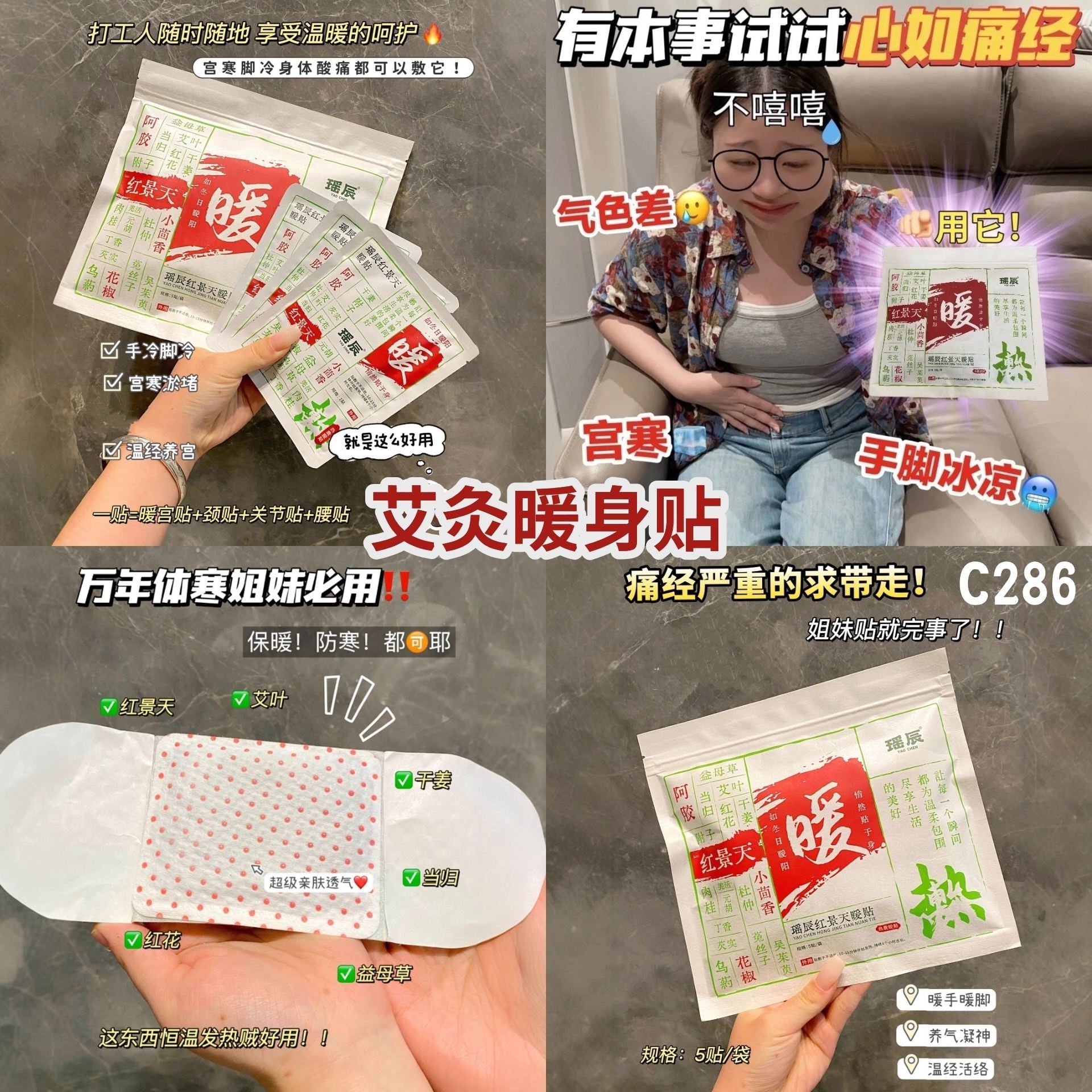 添加了红景天和艾草🔥🔥,这两种天然的草本成分,贴上之后暖暖的