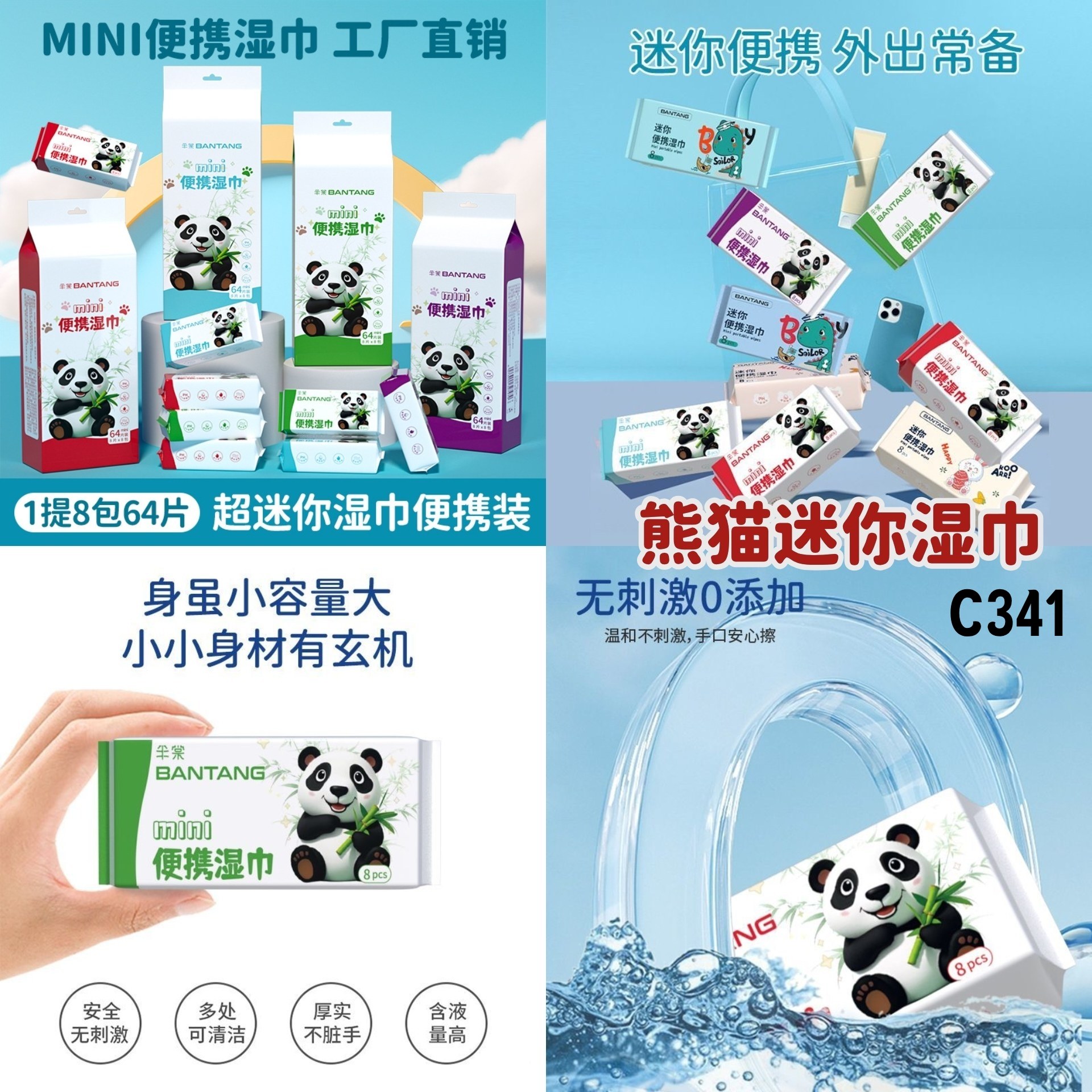 C341 熊猫迷你湿巾 RM9.90(2提16包)