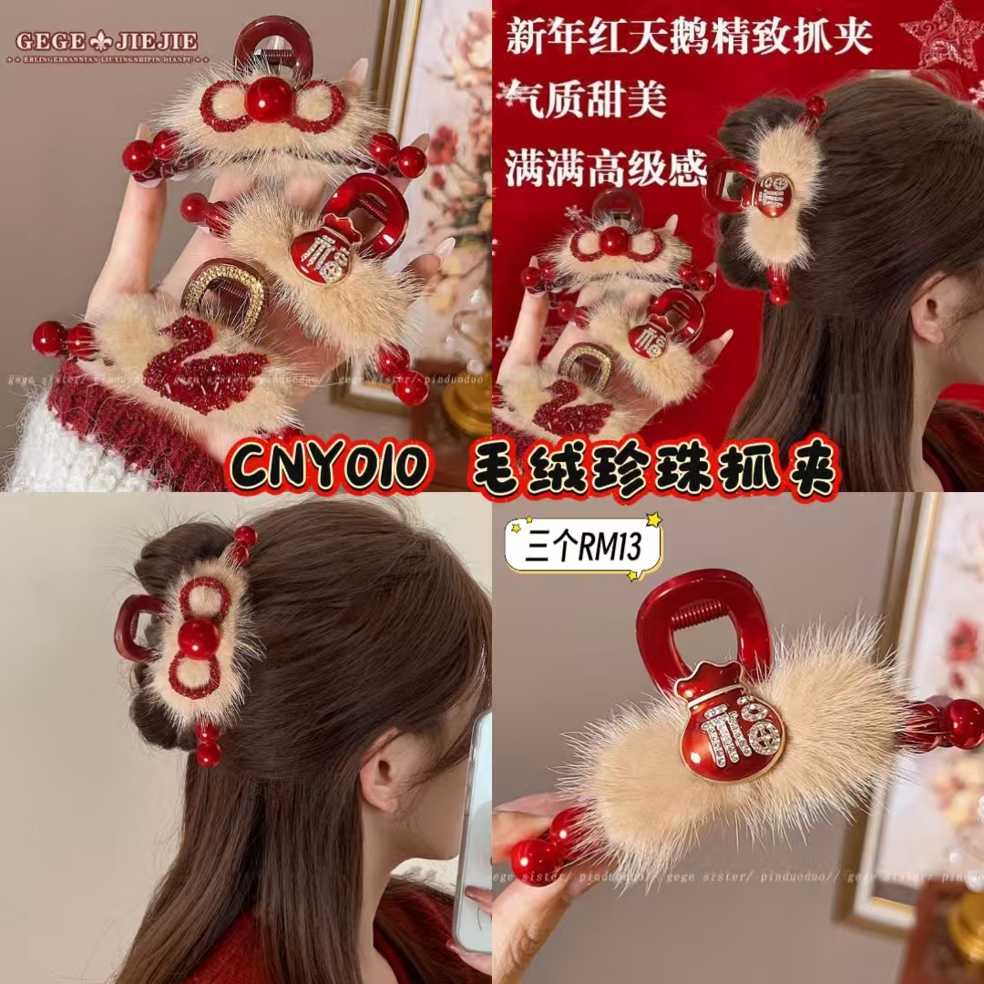 CNY010 毛绒珍珠抓夹 🧧 #三个RM13