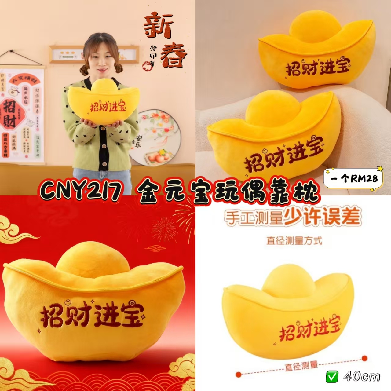 CNY217 金元宝玩偶靠枕 🧧 #一个RM28