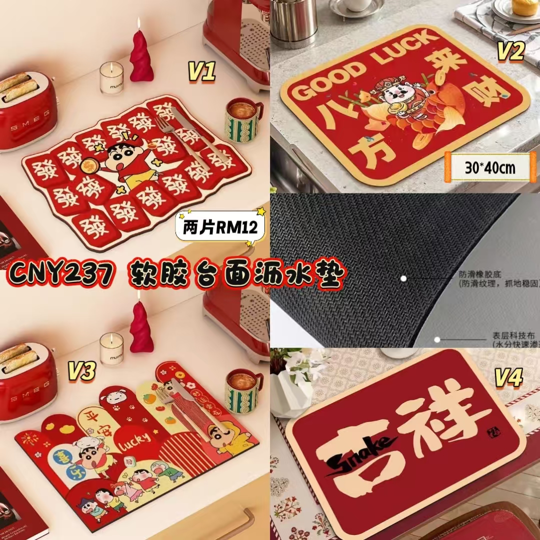 新年蜡笔小新厨房台面沥水垫,红色喜庆防滑餐桌杯垫吸水隔热垫,尺寸30*40cm