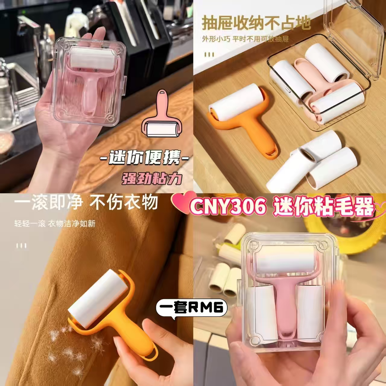 迷你粘毛器滚筒撕式替换小型便携 除毛器滚刷高粘度毛发 【收纳盒+3卷替换芯】