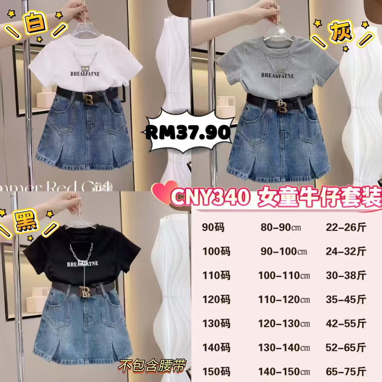 CNY340 女童牛仔套装 🧧#一套RM37.90