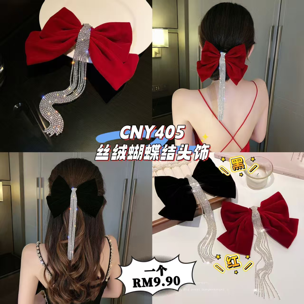 CNY405 丝绒蝴蝶结头饰 🧧 #一个RM9.90