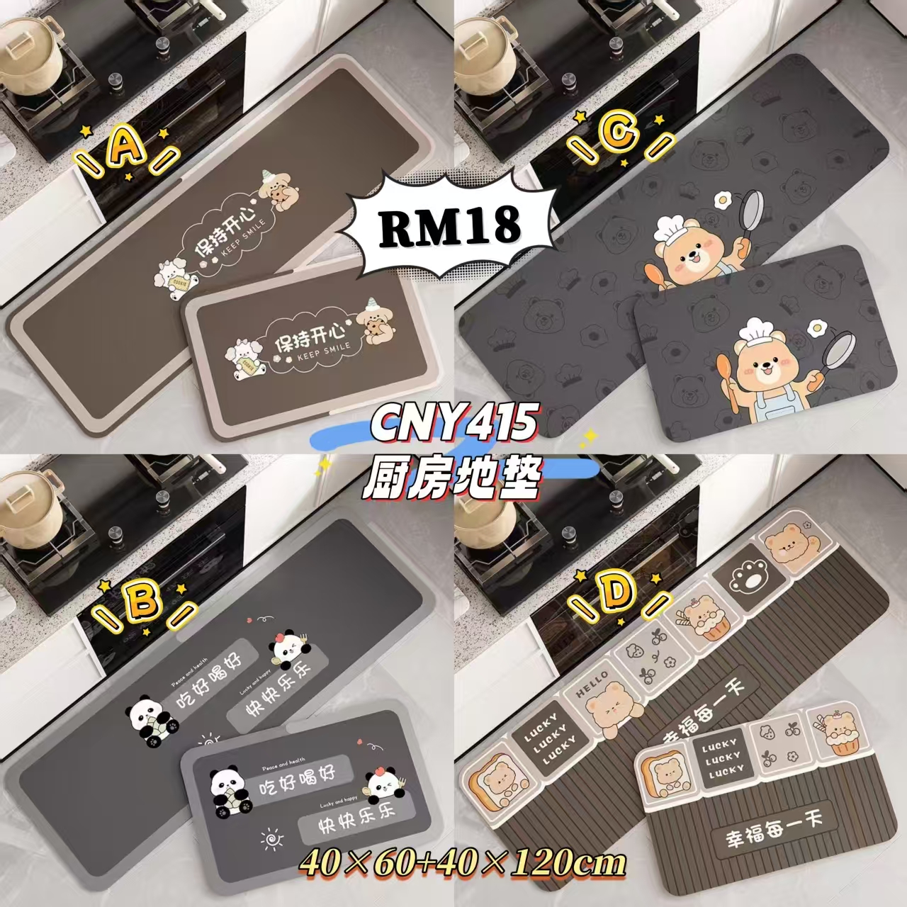 CNY415 厨房地垫 (1套)