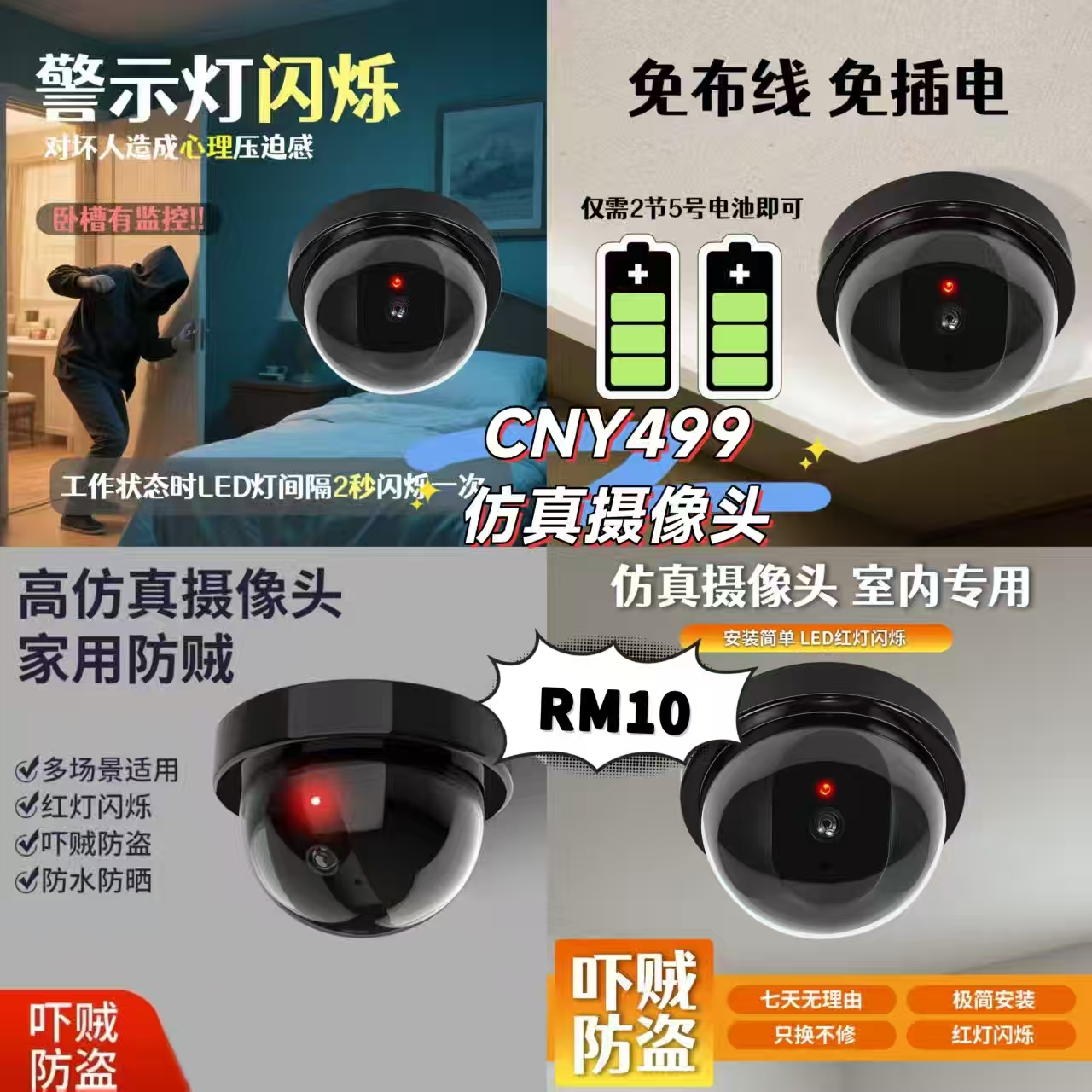 仿真摄像头监控假摄像头 监控器室内免打孔粘贴家用假探头模型
