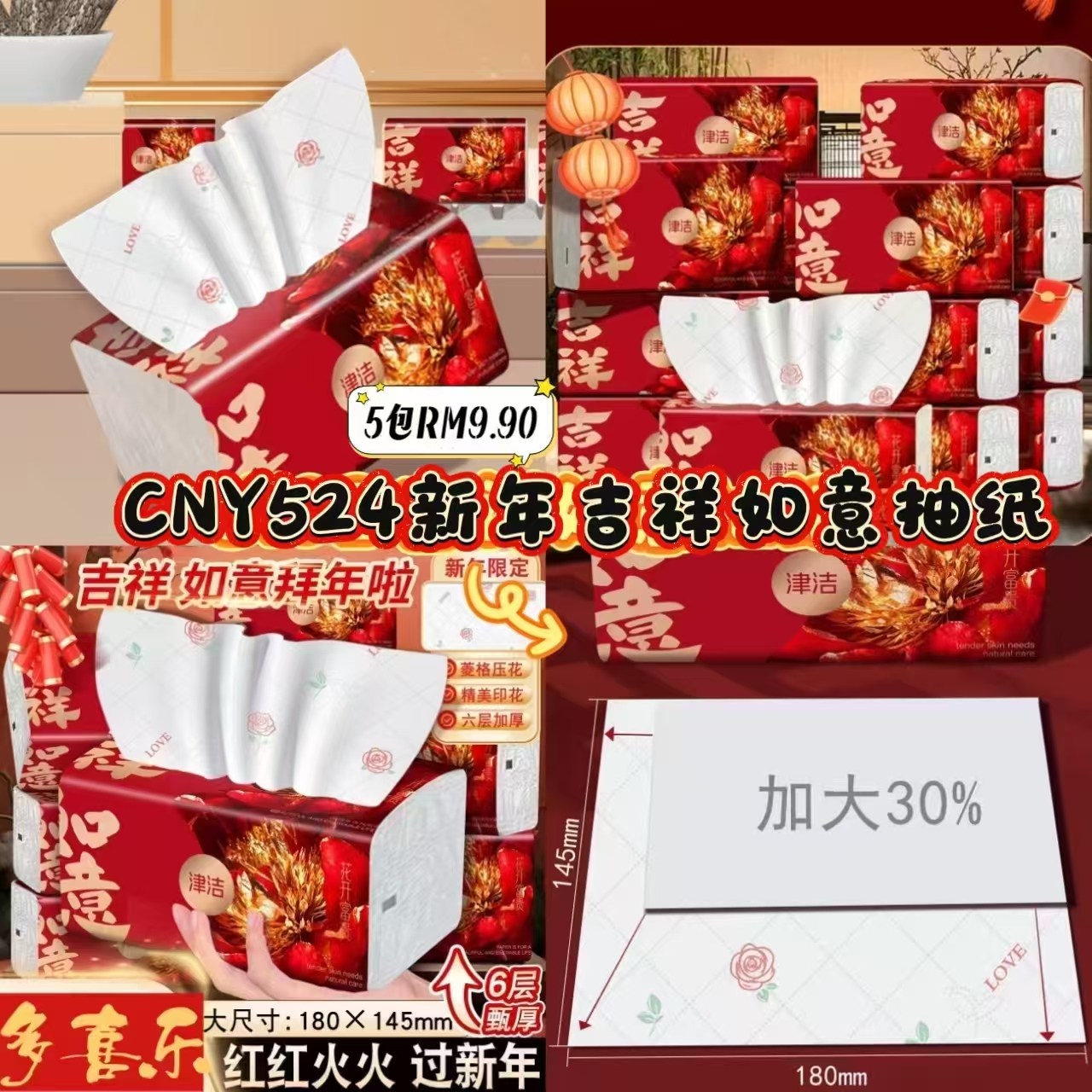 CNY524 新年吉祥如意抽纸 🧧 #5包RM9.90