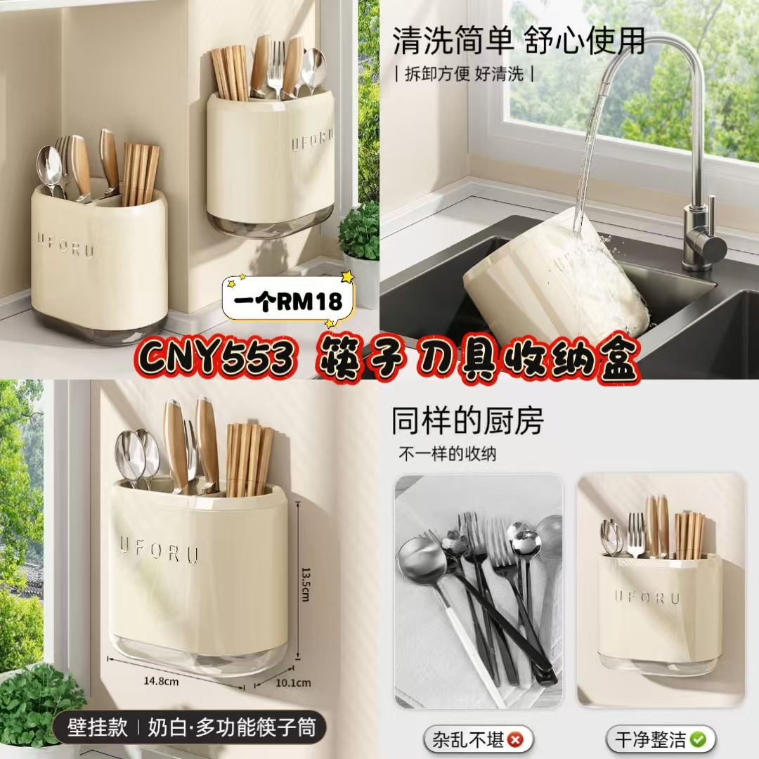 厨房收纳神器,免打孔筷子盒拯救杂乱台面,这款美观又实用