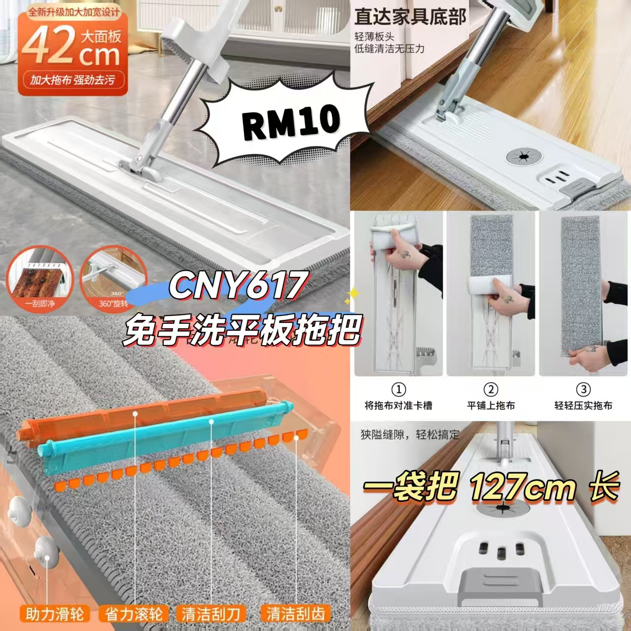 CNY617 免手洗平板拖把