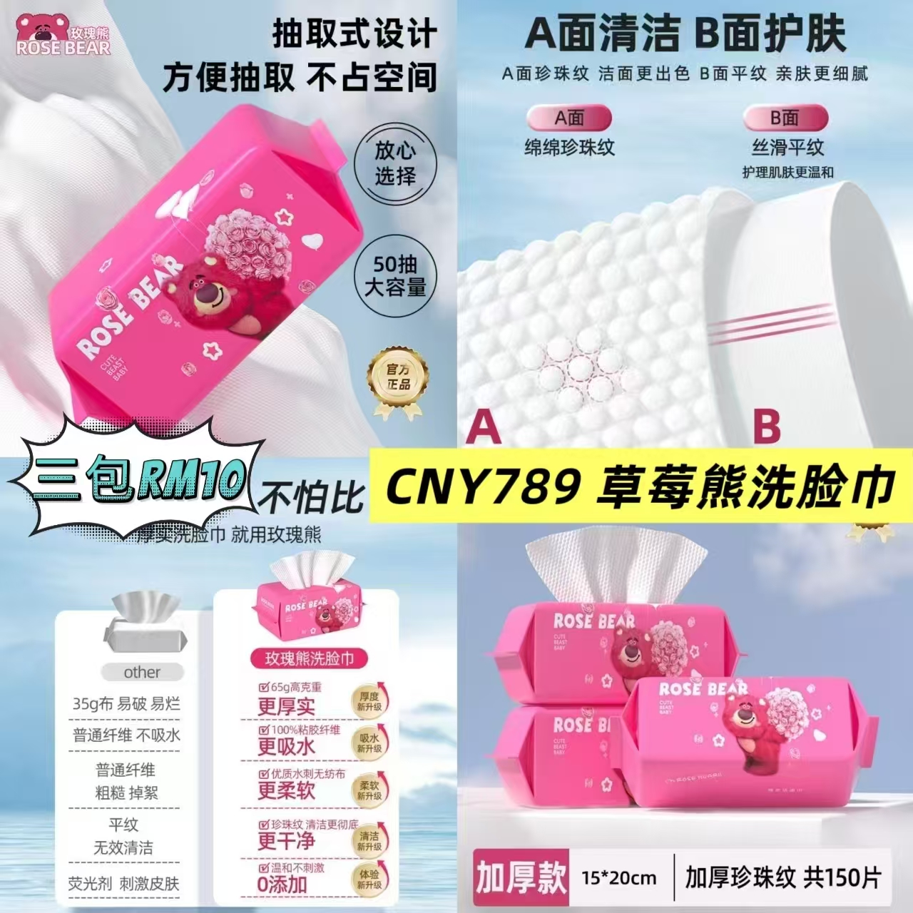 CNY789 草莓熊洗脸巾 🧧 #三包Rm10