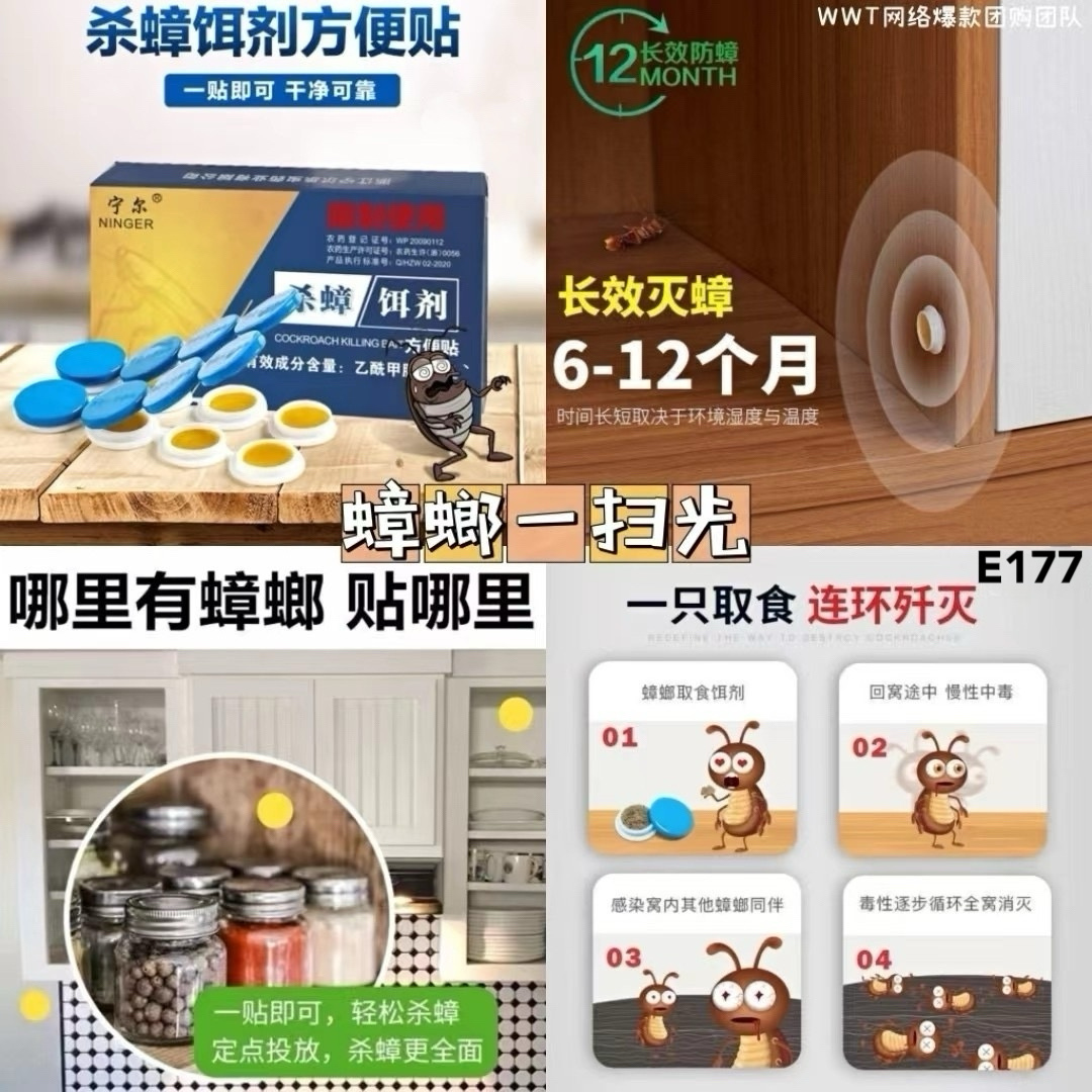 黏贴款,连橱柜都能贴✌🏻,蟑螂吃到后会一阵子才阵亡,就能达到一窝灭的效果啦‼️