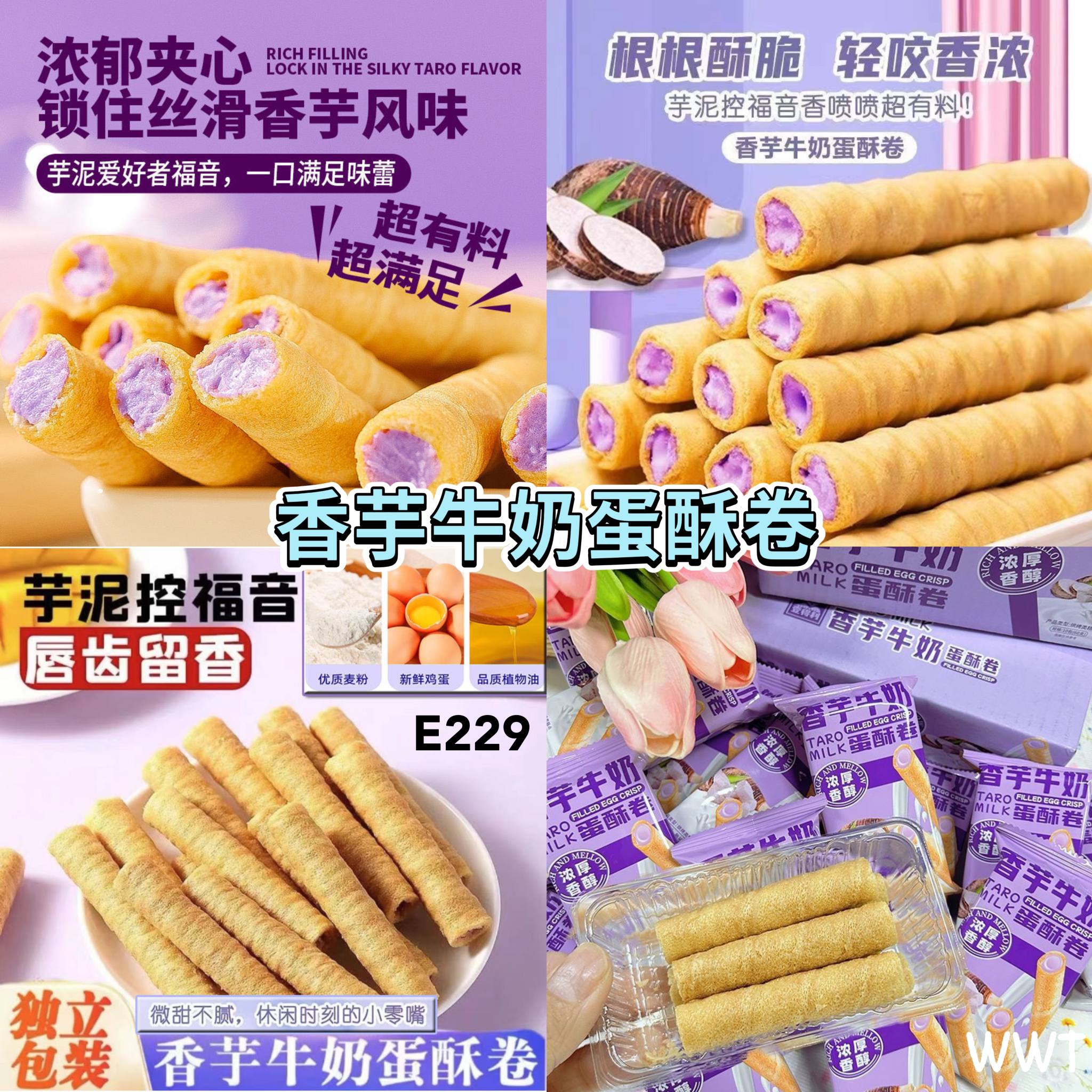 E229 香芋牛奶蛋酥卷 RM9.90(10包60根)