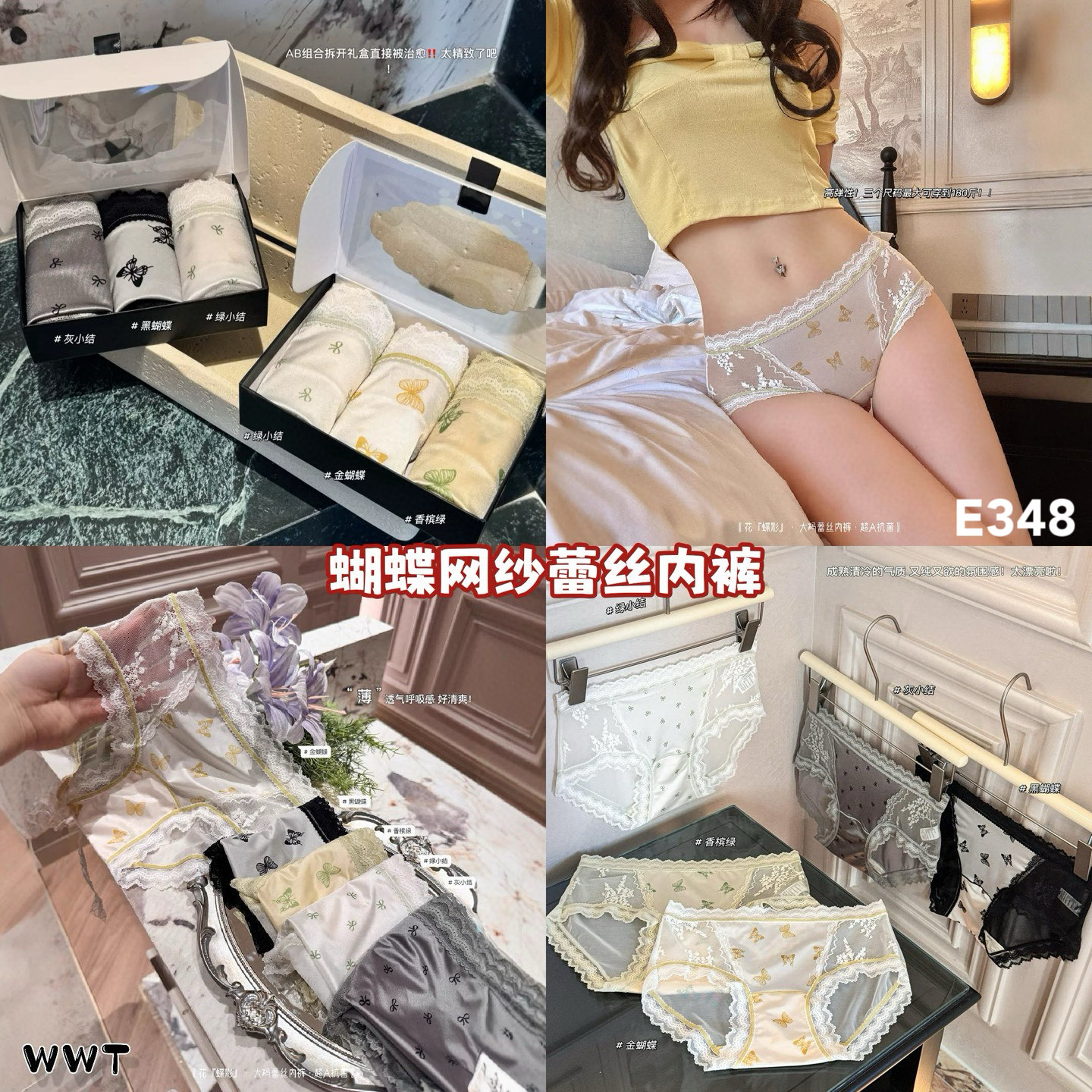 Be the first to review “E348 蝴蝶网纱蕾丝内裤(1组3件)”