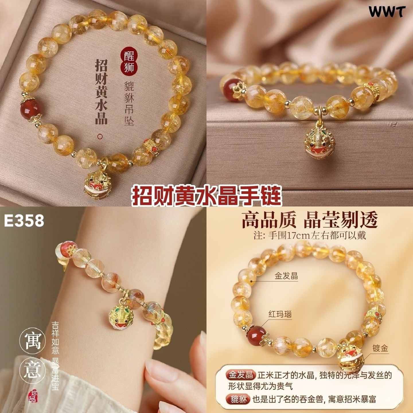 E358 招财黄水晶手链(1条)