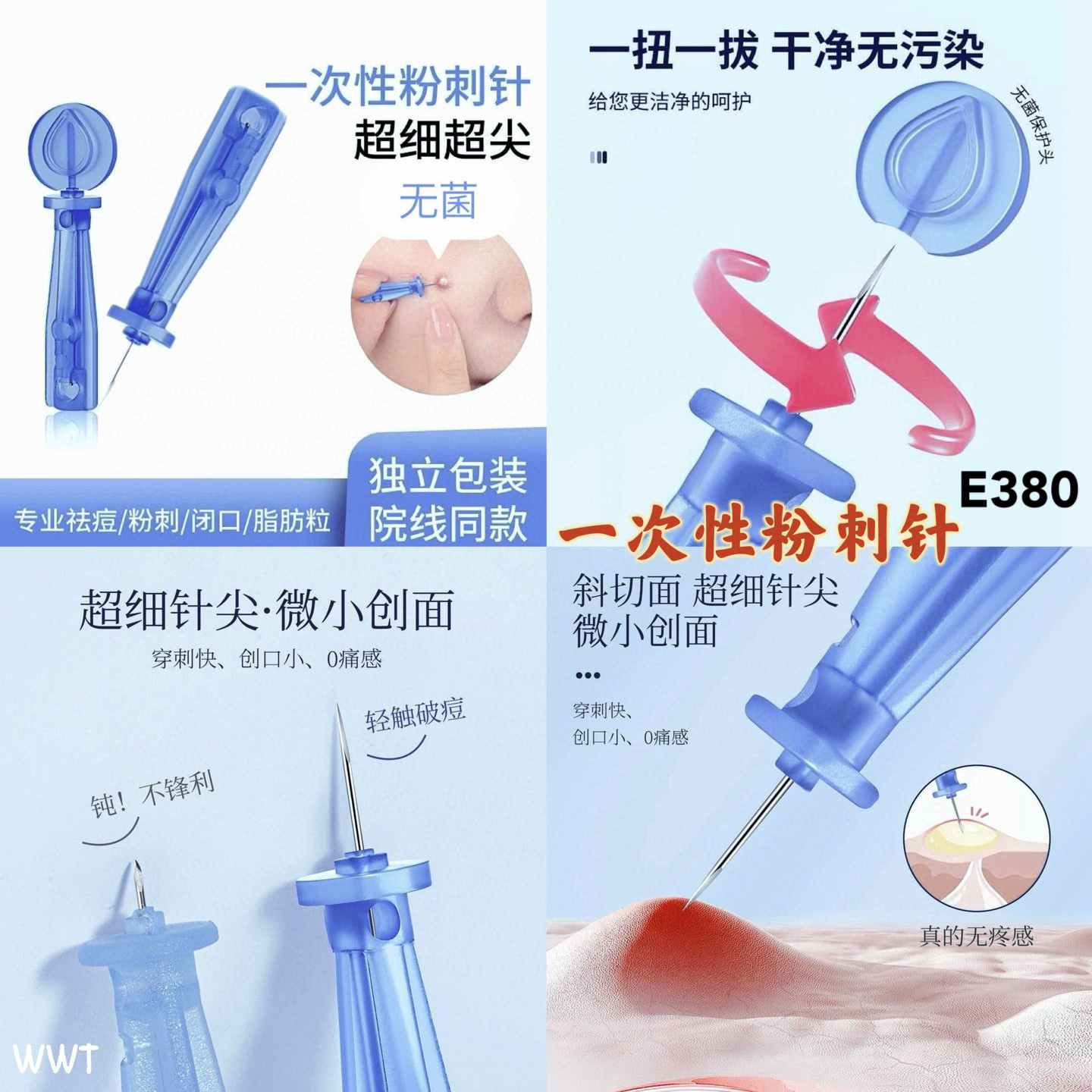 它一次性使用,保证无菌卫生,再也不怕交叉感染啦!😷 针头超级尖细,轻松刺破痘痘,根治闭口粉刺