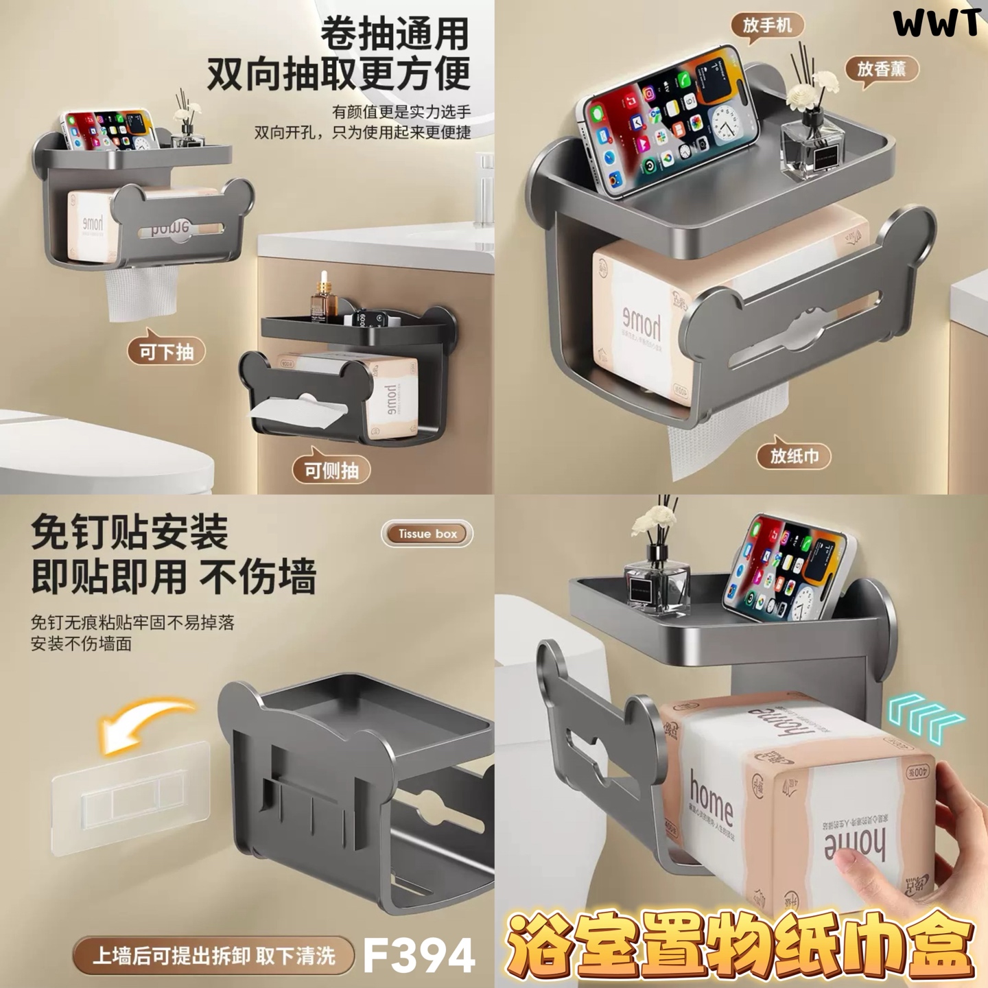 可放纸巾、手机、香氛,墙面收纳一盒搞定!可侧抽、可下抽,使用更顺手~