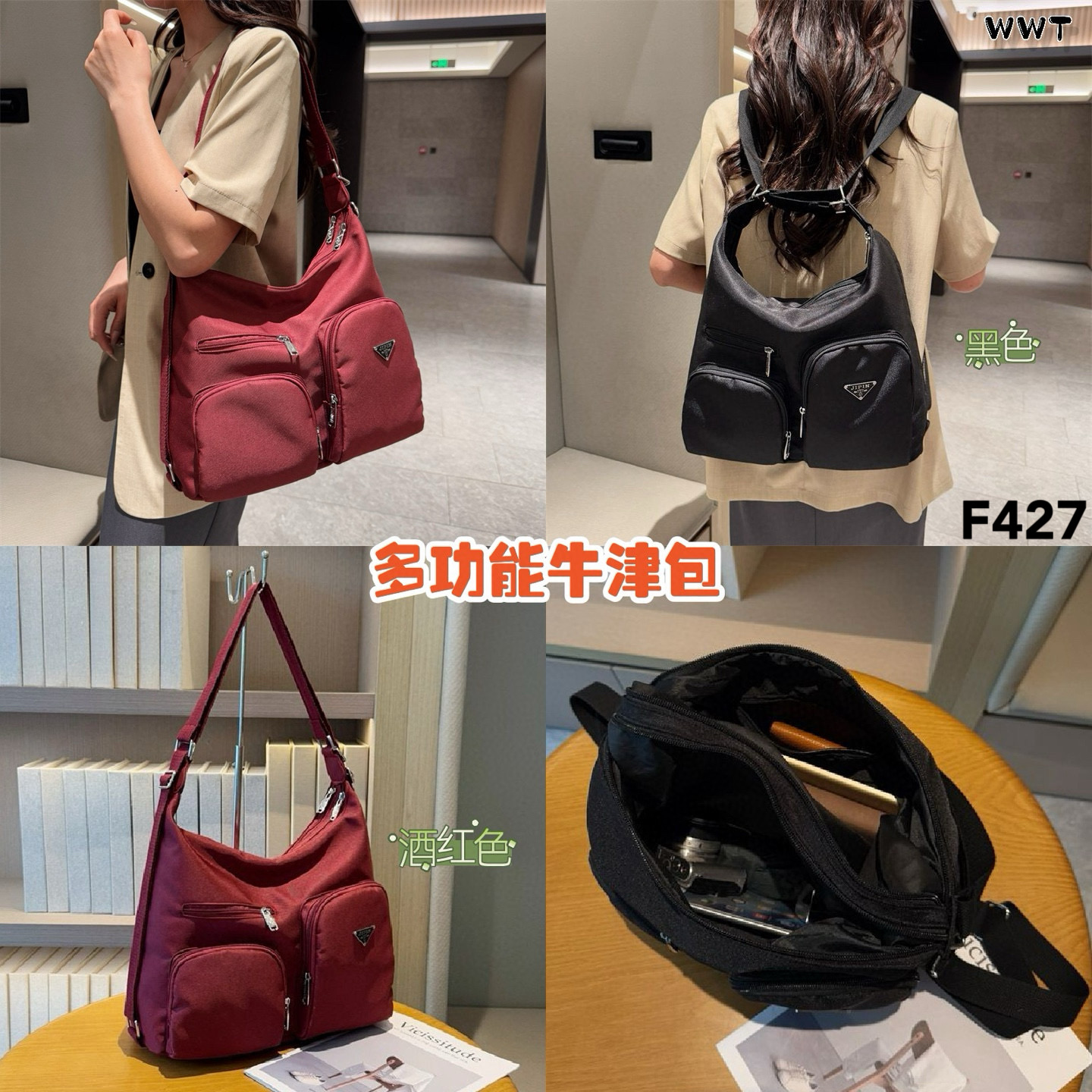 黑色经典✔️,酒红显气质✔️,百搭又实用!牛津尼龙布材质,耐用又大方,还可以根据喜好搭配不同背法✌️