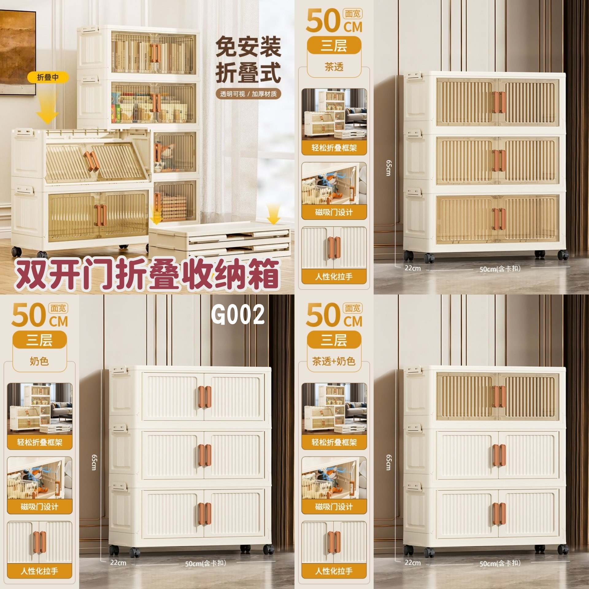 免安装!可折叠!双开门设计超方便~不论是衣物、杂物、宝宝玩具、书本统统收得整整齐齐,空间翻倍利用!