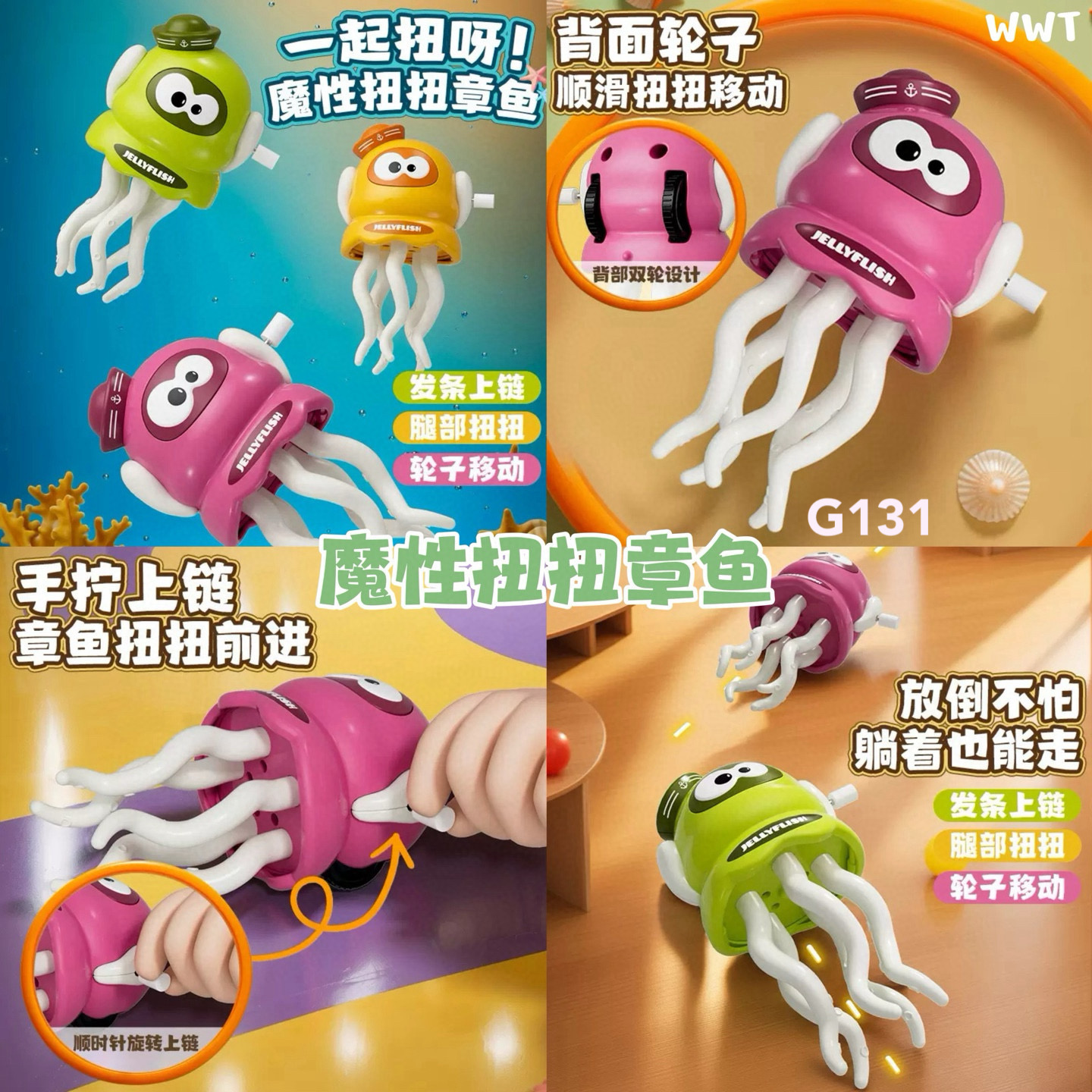 旋转上链就能滑动前进😍😍,背部双轮顺滑推进,趣味满满的魔性小章鱼,陪你一起扭扭冲冲冲~🚀