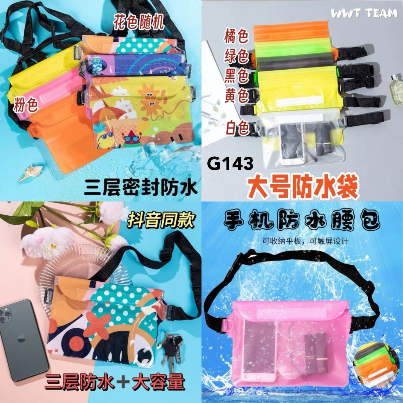 之前带儿子去water theme park玩,试用了真的不进水👍,游泳也能带上,袋子半透明,放进去袋子也能滑手机,三条PVC防水条,不用怕会掉出来~🤩