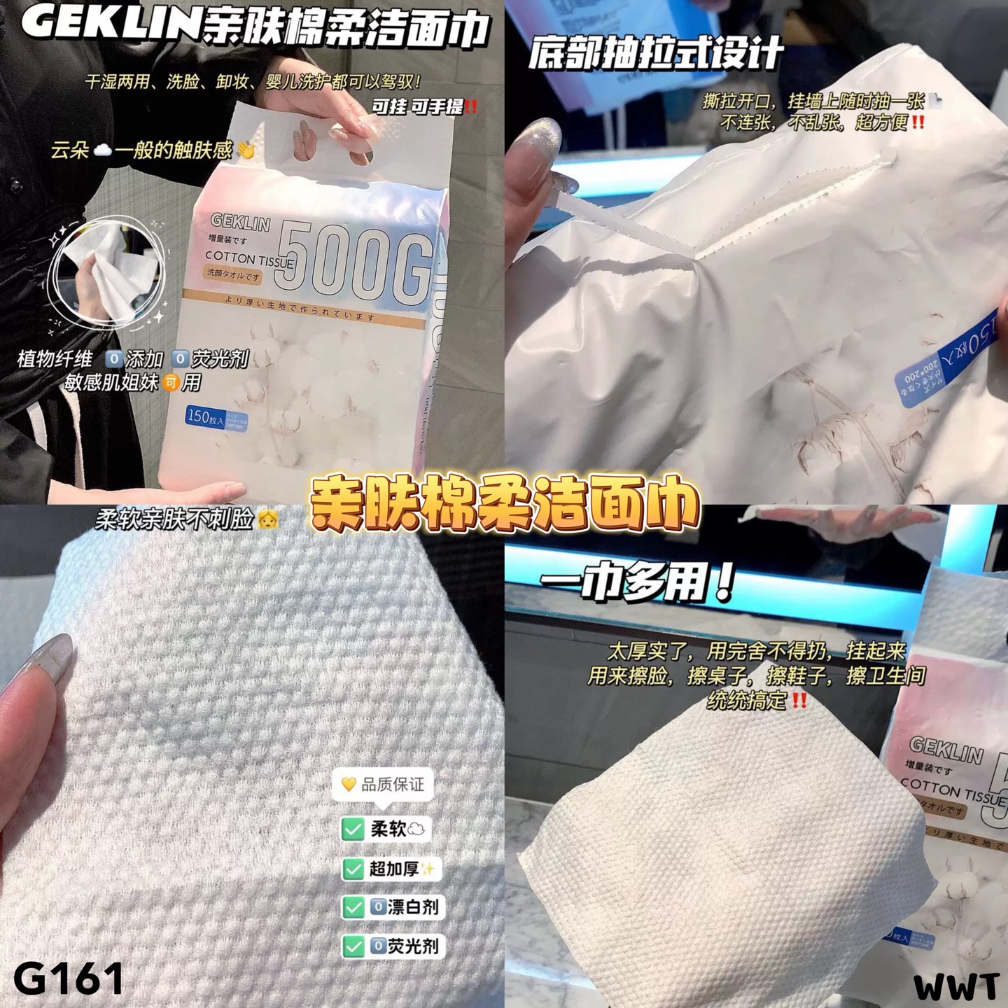 抽拉式设计方便取用,挂墙不脏不乱;一巾多用,擦脸、擦物都合适👍,1袋150抽
