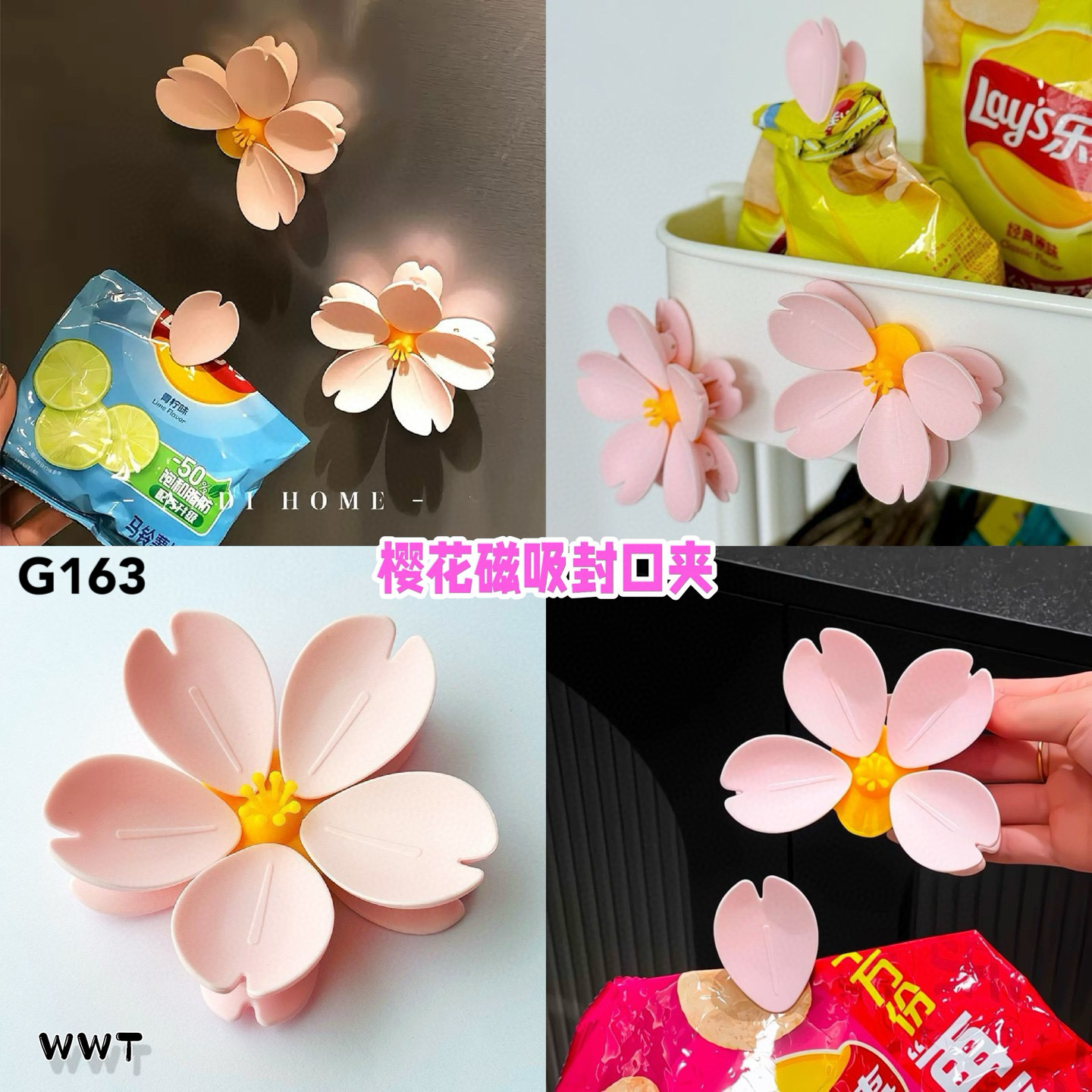 超萌樱花造型,吸住零食包超牢固!还能当冰箱贴,收纳又美观💕