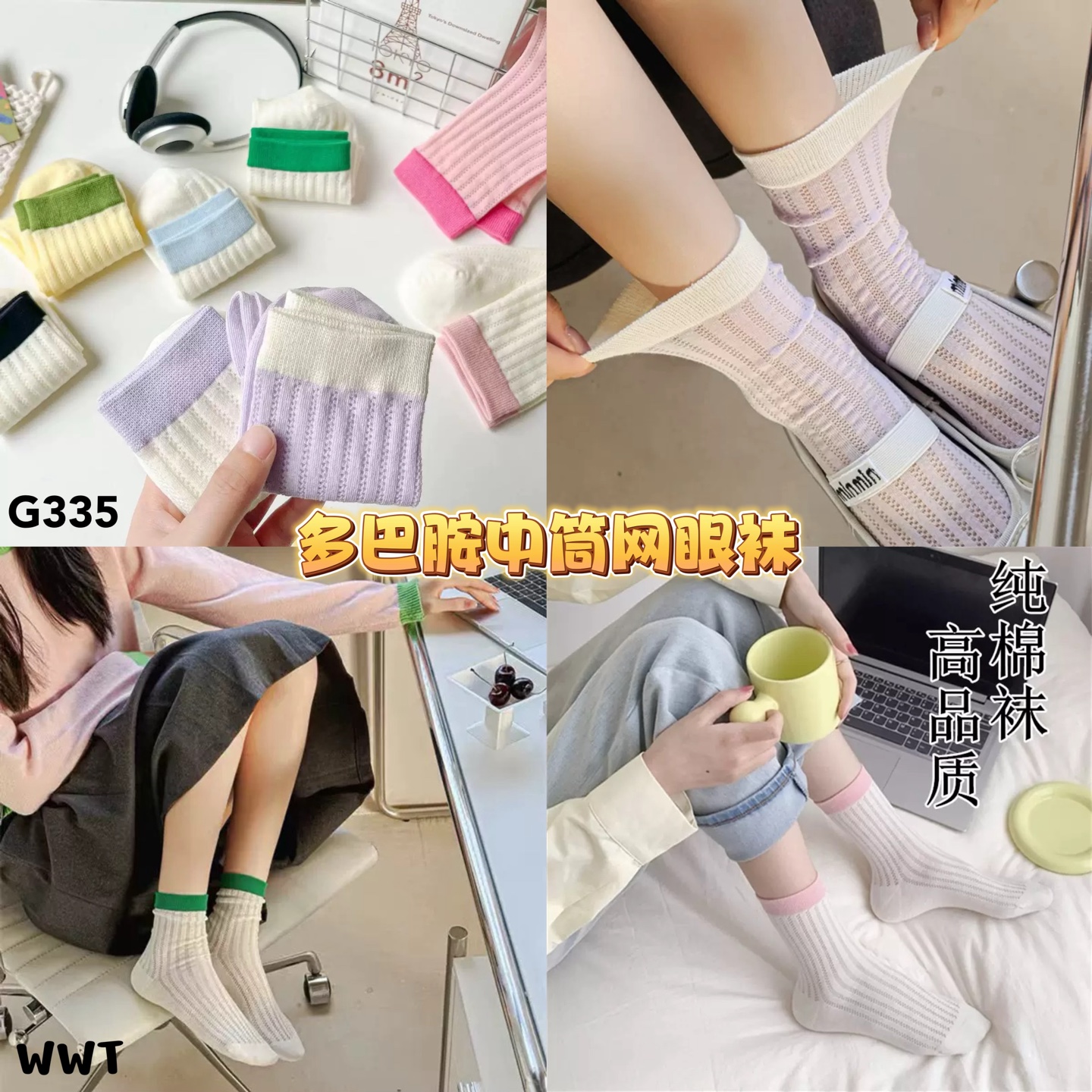 G335 多巴胺中筒网眼袜 RM18.90(1套5双)